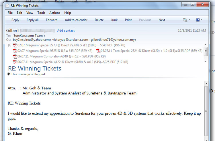 Winning Ticket Magnum Consolation Prize 10 July 2011